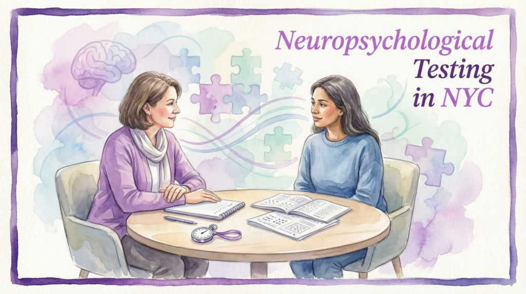 If you’re looking for neuropsychological testing in NYC to clarify ADHD, memory, or learning concerns and obtain documentation for school or workplace accommodations, you can request a consultation with our Midtown Manhattan team and get a personalized testing plan based on your specific goals.